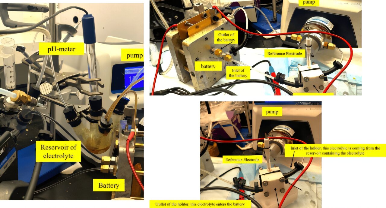 The researchers devised two real-time experimental methods for quantifying each mechanism. In the first, they used reference electrodes to measure voltage signature differences between the quinones and resulting quinone-CO2 adducts.